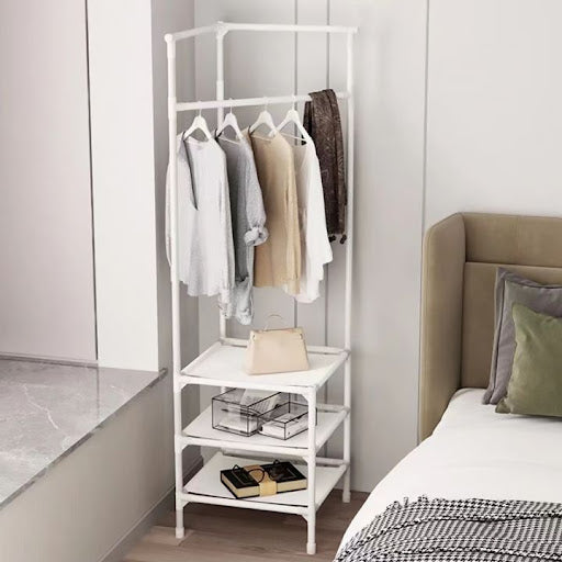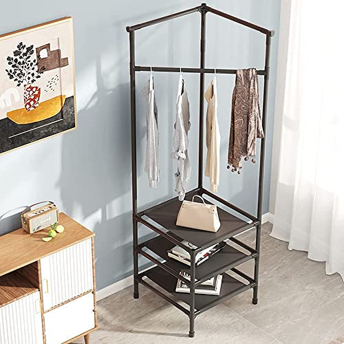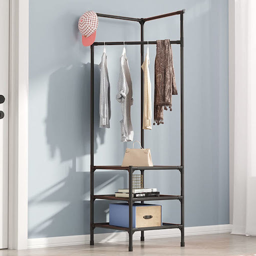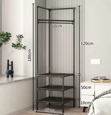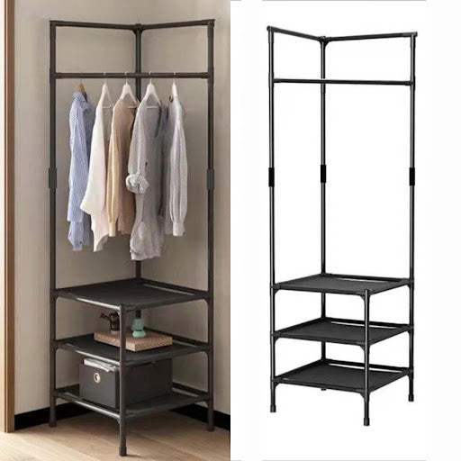 Cuier metalic de colt, 3 rafturi de organizare cu suport umerase