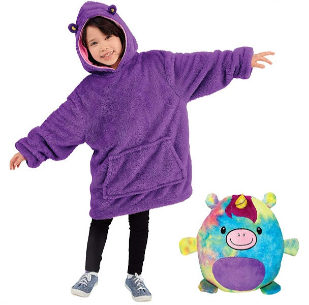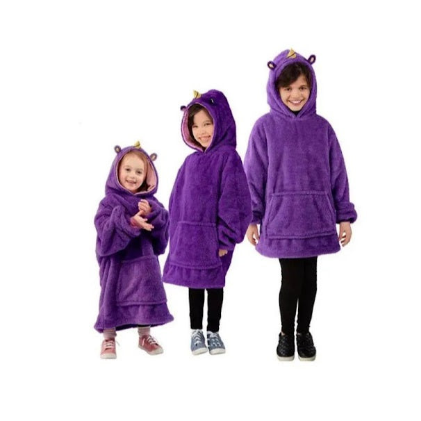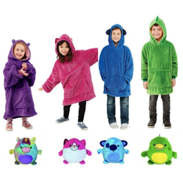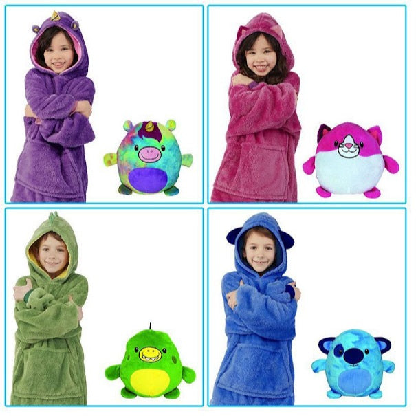 Acest accesoriu este o jucarie de plus care se transforma intr-un hanorac marre, confortabil