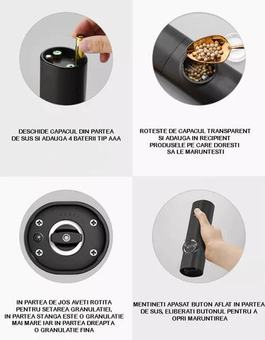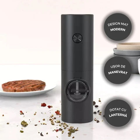 Rasnita Electrica este ideala pentru a macina sare, piper, chimen si alte condimente.